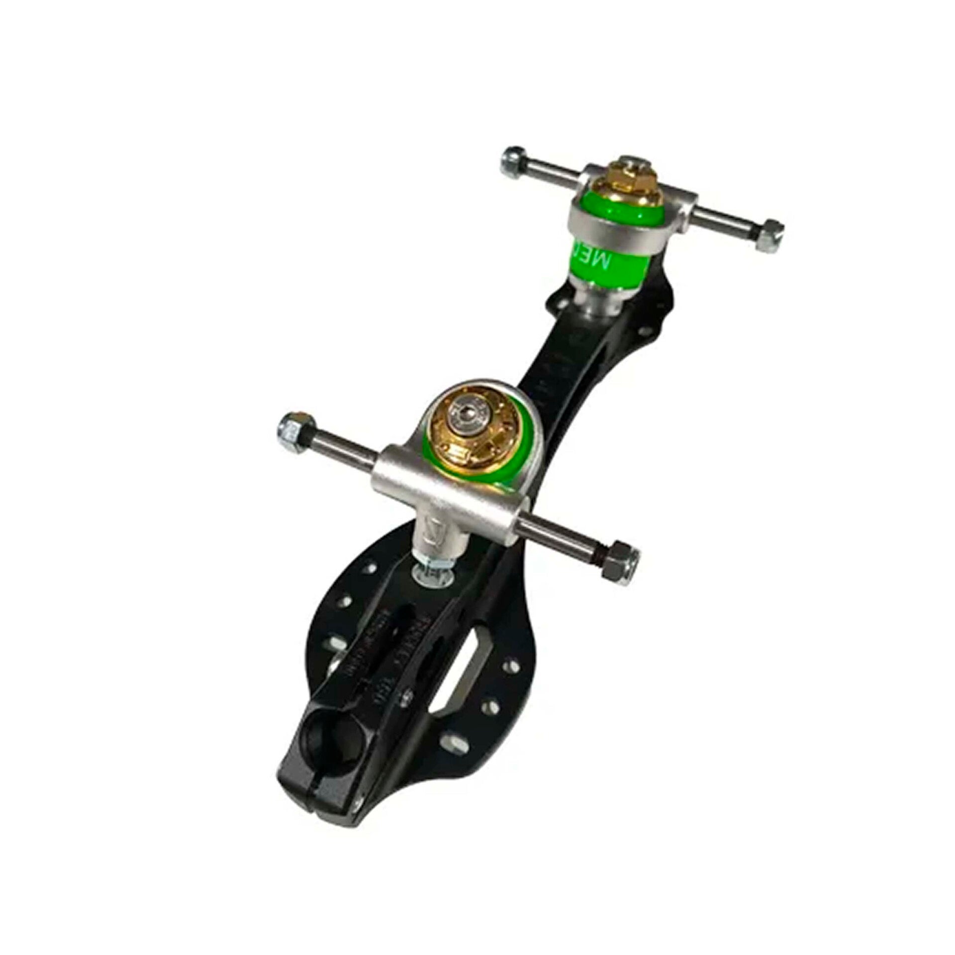 Patines de aluminio súper ligeros con base amplia y curvada, para una mejor adaptación a las botas, consiguiendo mayor estabilidad y control en el juego.